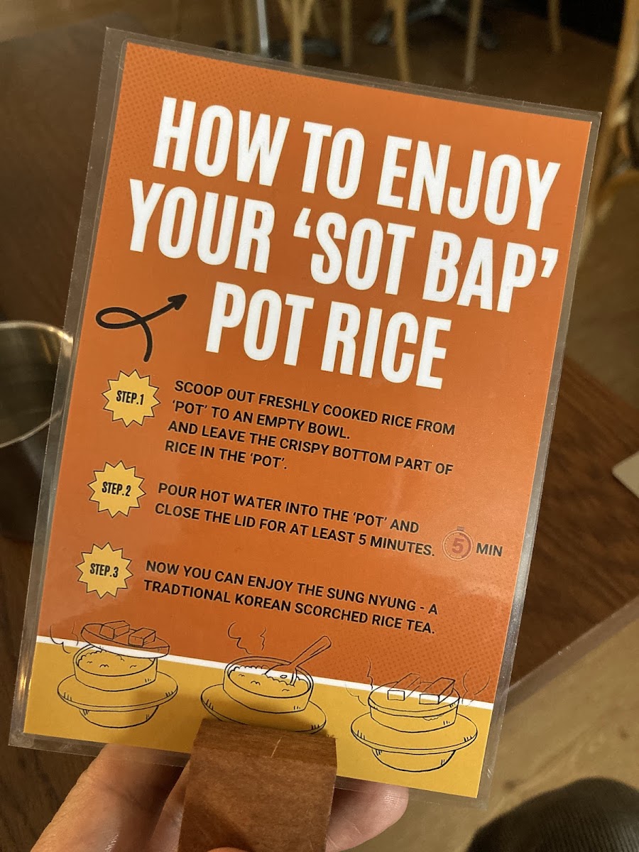 Pork bone, potato, perilla seeds, chives and vegetables in slow-cooked pork bone broth. Served with side dishes, kimmari, vegetable dumpling, salad and rice.
